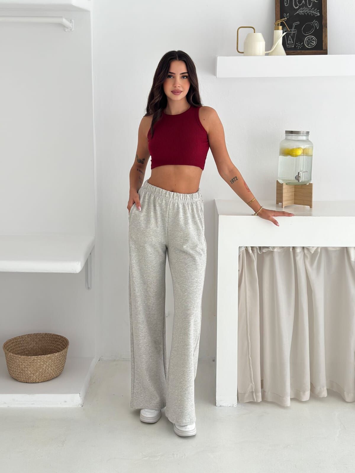 Bu özel palazzo kesim eşofman altı, rahatlık ve şıklığı bir arada sunar. Beli ayarlanabilir özelliği sayesinde her bedene uyum sağlar, pamuklu 3 iplik materyaliyle de yumuşak bir dokunuş sunar. Hem spor yaparken hem de günlük kullanımda rahatlıkla tercih edebileceğiniz bir parçadır.