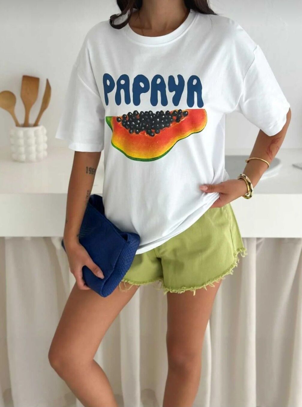 Papaya Baskılı Oversize T-Shirt %100 Pamuklu